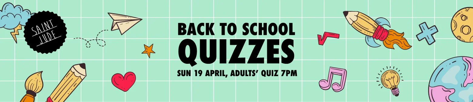 Join us at our Back to School Quiz, Sunday 19th April, from 7pm